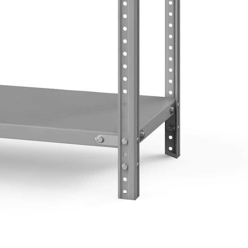 - Облегченная конструкция. Болтовые соединения придают жесткость стеллажу, не утяжеляя его и не требуя использование дополнительных элементов;